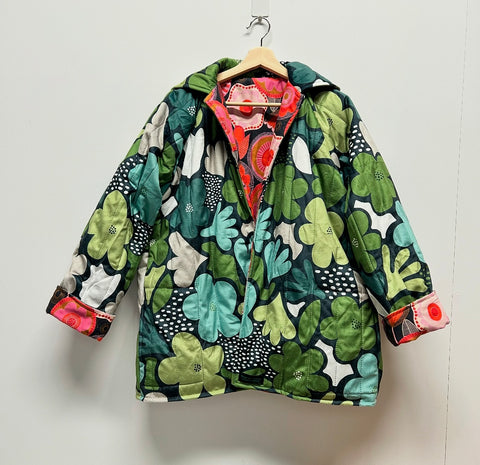 Reversible Quilted Jacket - Rainforest and Green Flowers