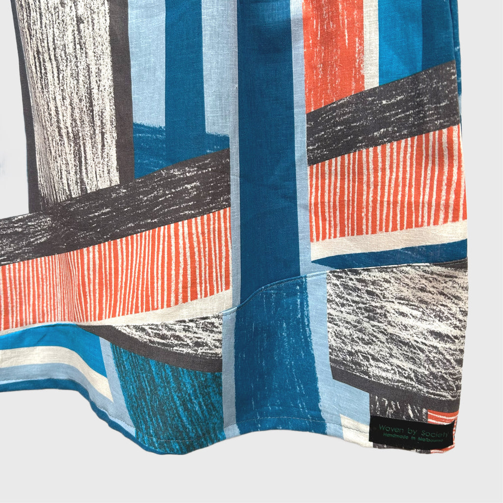 This is a round neck sleeveless top. The fabric is a kokka cotton linen by Keshiki called Office Street. It has a simple neckline and side darts at the bust to give a more fitted look. I have added a co-ordinated light blue binding to the armholes and neckline. The front hem has an added panel, giving it a faux assymmertical look.
